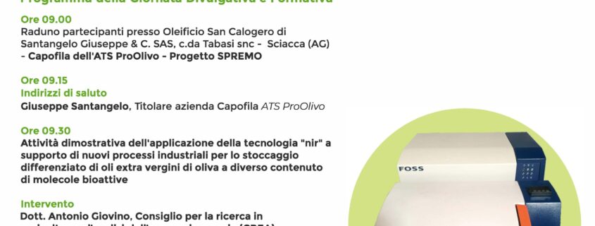 Attività dimostrativa dell’applicazione della tecnologia “nir” a supporto di nuovi processi industriali per lo stoccaggio differenziato di oli extra vergini di oliva a diverso contenuto di molecole bioattive