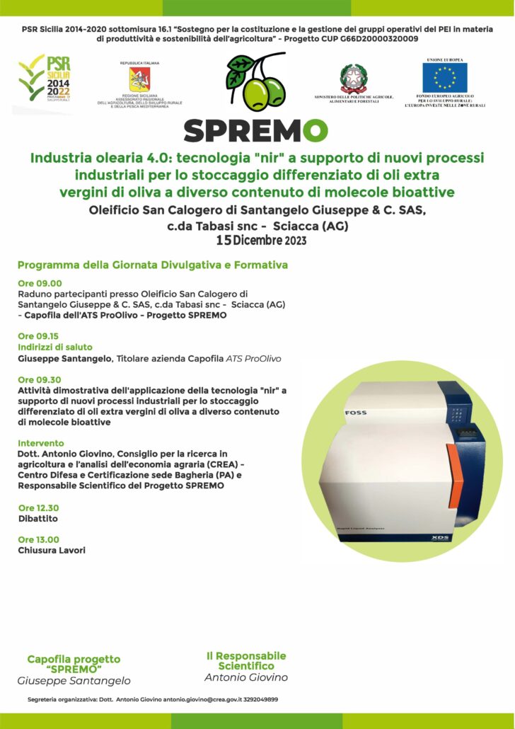 Attività dimostrativa dell’applicazione della tecnologia “nir” a supporto di nuovi processi industriali per lo stoccaggio differenziato di oli extra vergini di oliva a diverso contenuto di molecole bioattive